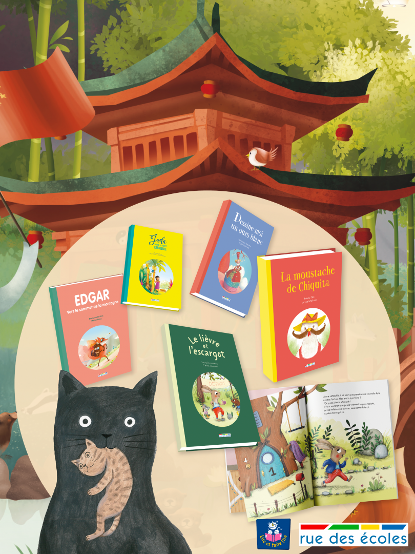 Ce choix graphique apporte une touche ludique et enfantine, en écho à l’univers des jeunes lecteurs. Une manière visuelle et amusante de montrer que chaque livre a sa place dans cette grande aventure littéraire.