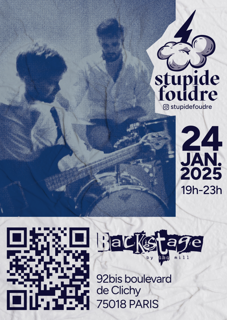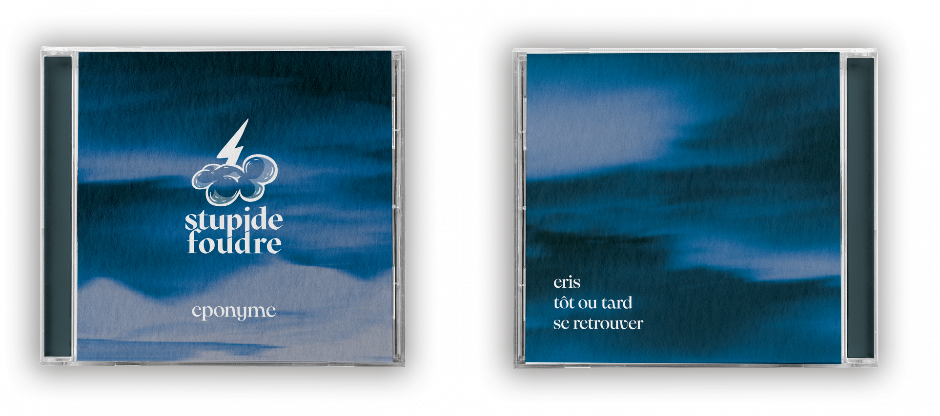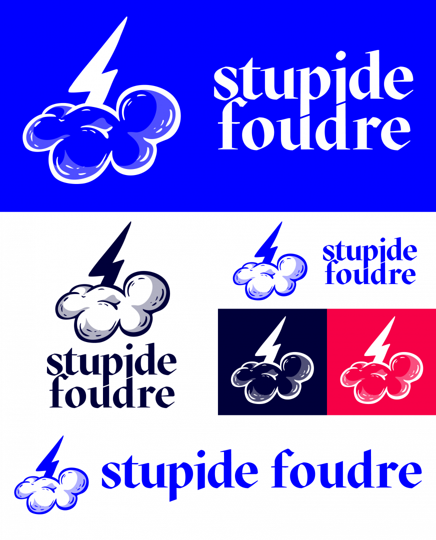 Le logo de Stupide Foudre traduit parfaitement l’univers du groupe : à la fois doux et chaotique, mélancolique et imprévisible. Il se compose d’un nuage, symbole de flottement, de rêverie et d’émotion, contrasté par un éclair qui frappe vers le haut, défiant toute logique.