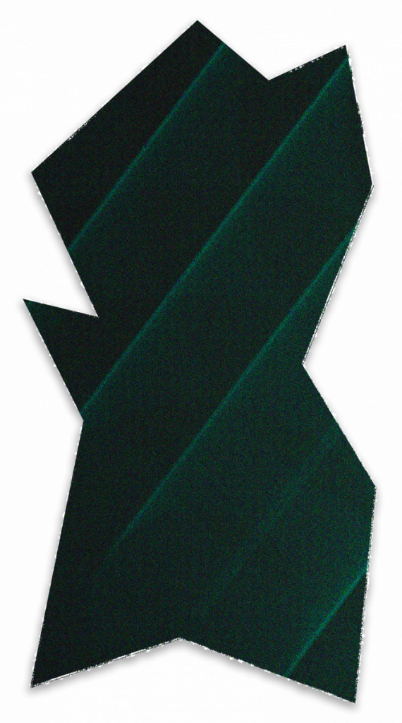 La palette de couleurs, composée de noir coloré, bleu et rose, évoque l’obscurité d’une salle de projection. Deux points lumineux diagonaux éclairent les ondes, à l’image du projecteur de cinéma, seule source de lumière lors d’une séance.