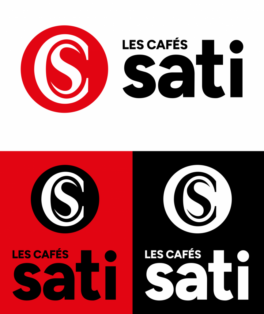 L’ajustement du logotype a permis de le rendre plus lisible et équilibré. L’espacement des lettres a été retravaillé, offrant une meilleure clarté typographique, et la distance entre « Les Cafés » et « Sati » a été optimisée pour une hiérarchie plus fluide. Cette refonte donne naissance à un logo plus percutant et contemporain, tout en restant ancré dans l’histoire de la marque, assurant ainsi une transition harmonieuse entre tradition et modernité.